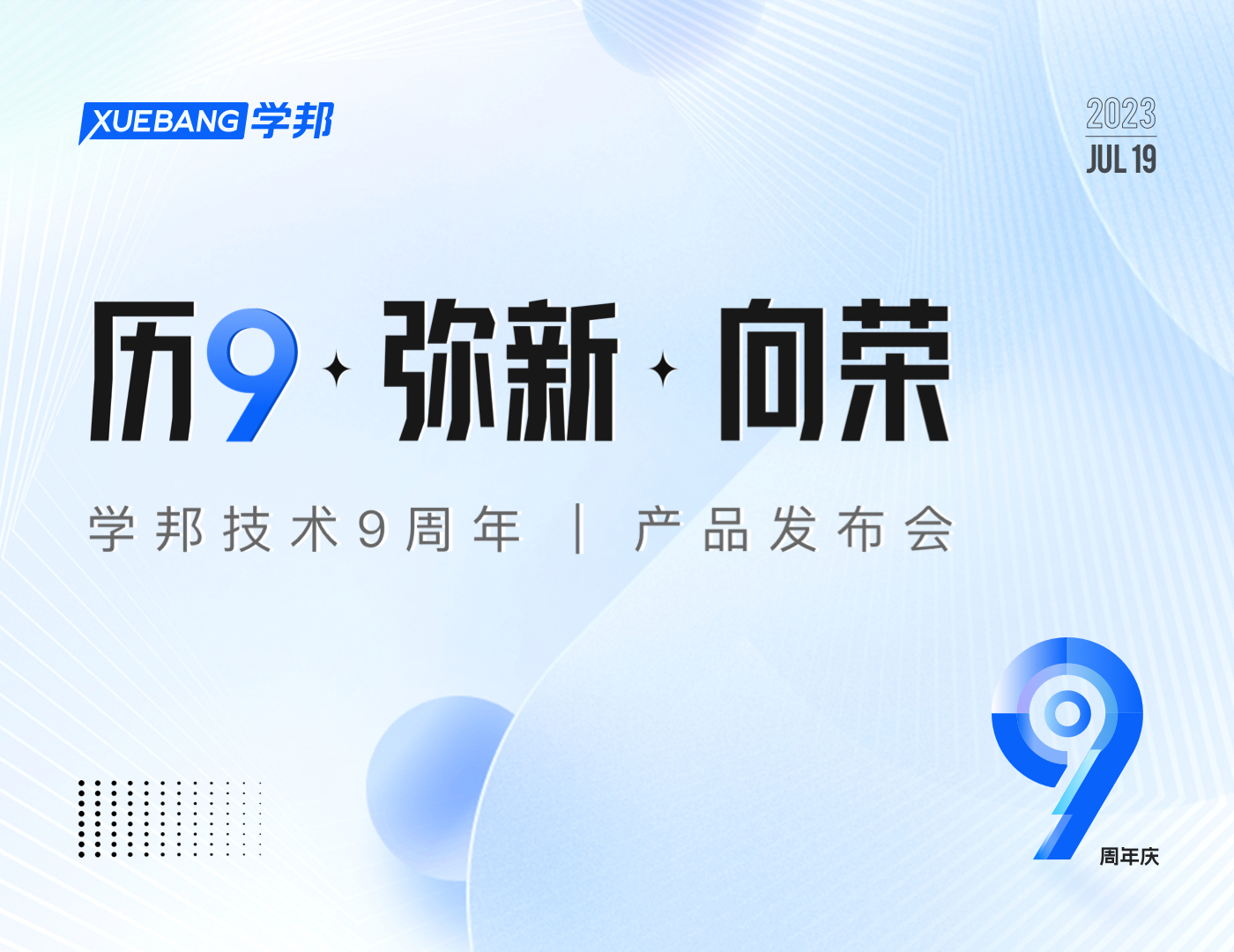 四季光阴匆匆而去,俯仰间,学邦已经9周岁啦,感谢各位校长老师一路的陪伴与支持,我们也将于2023年7月19日线上举办9周年庆典?。?! 回头望望这9年间,我们坚守初心,匠心为教培行业科技赋能;这9年间,我们砥……