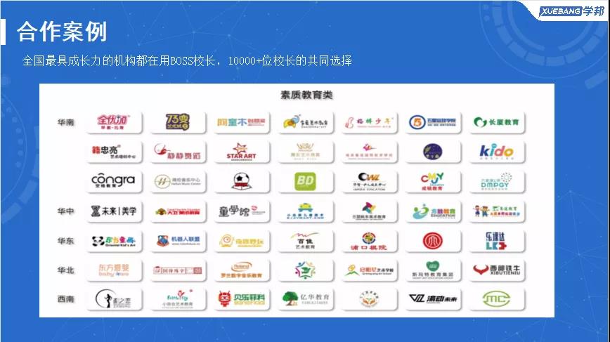 学邦技术携教务运营管理系统BOSS校长、教研教学服务系统教学易、家校服务平台-学讯通、咨询服务电话录音系统-电服宝、市场推广平台-微秀、教培收银平台-校长收银、教培网校商城线上选课、机构课后邦托管平台等七大系列产品出席了交流会。