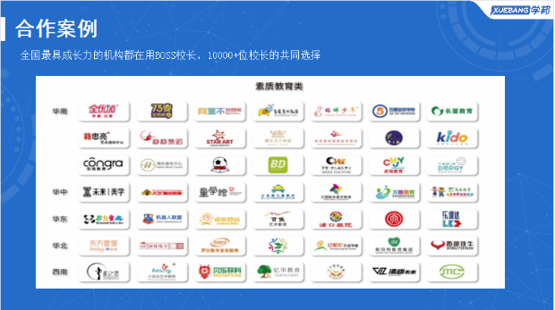 学邦技术受邀出席了会议,在会上分享了课后托管服务管理平台邦托管、教务运营管理系统BOSS校长、教研教学服务系统教学易、家校服务平台学讯通、教培收银平台校长收银、咨询服务电话录音系统电服宝、家校服务平台学讯通、微秀等七大系列产品方案。