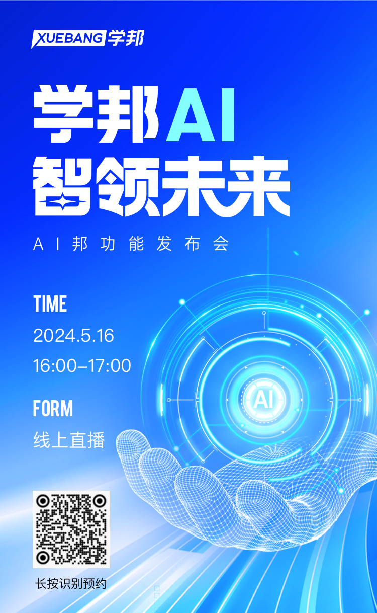学邦AI,智领未来 5月16日下午4点学邦AI产品发布会邀请您见证下一代智能教培信息化