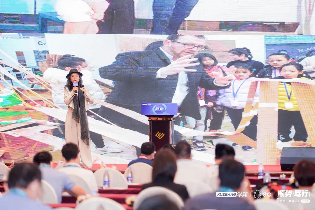 最后是左印美术创始人陈学燕陈总,分享题为《响应中央美育——如何打造科学原创的美育体系》的演讲,带上她的英皇课程体系,将二十多年来的少儿美术教育经验娓娓道来。