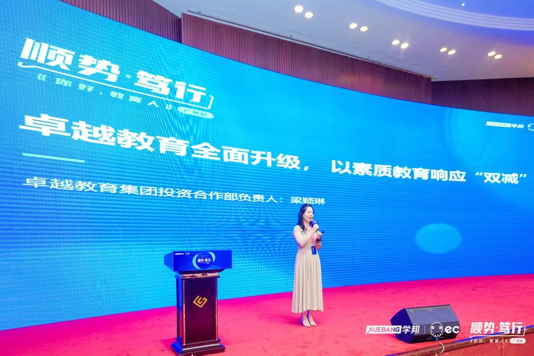 紧接着,卓越教育集团投资合作部总经理梁颖琳女士以主题为《卓越教育全面升级,以素质教育响应“双减”改革》的演讲给我们介绍了卓越教育的全面升级以及投资布局。