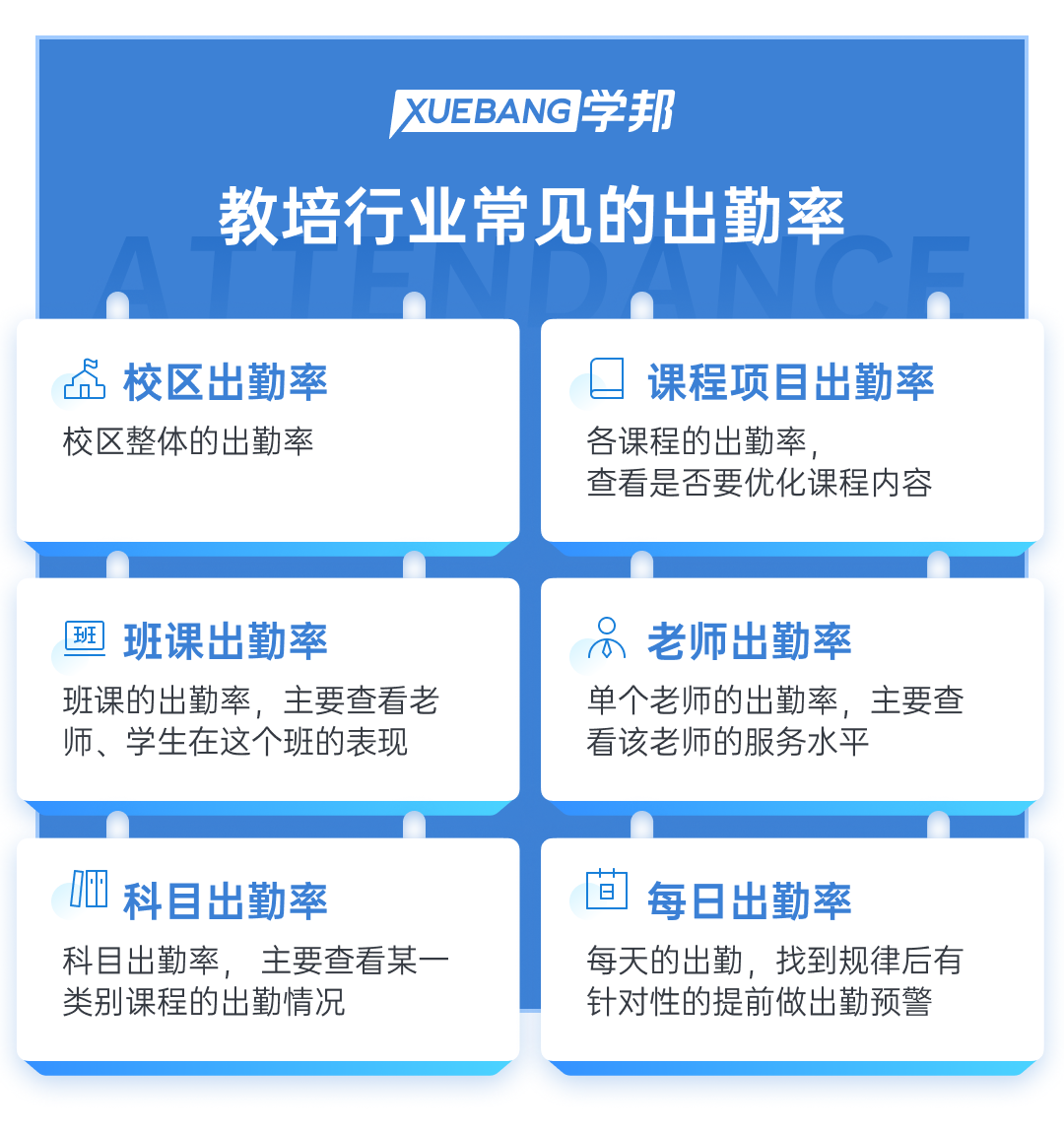 为助力机构有效提升出勤率,学邦上新出勤报表功能: ①出勤数据聚合,赋能校长多元分析,为出勤制度的制定保驾护航;②动态呈现出勤情况变化,方便机构针对性优化出勤制度,让制度说话;③降低运营成本,高效调配……